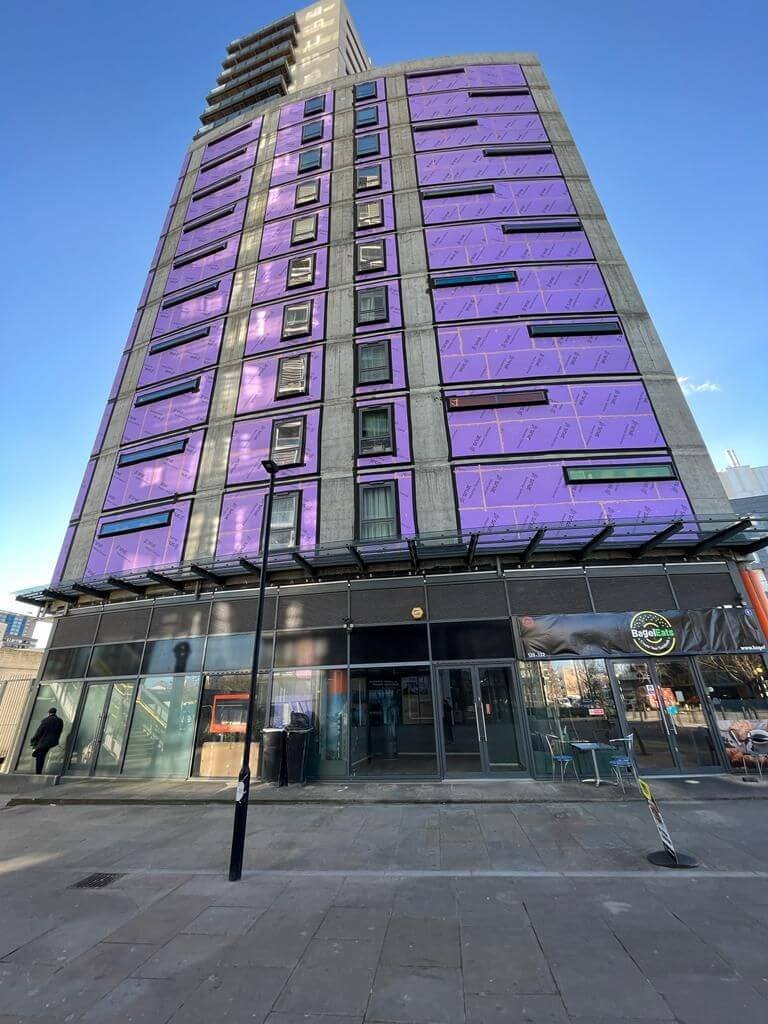 Completion at CMT CONSTRUCTION cladding project in Poplar, East London. We managed today to hand back the building to the owner with all of the ACM cladding removed and the external envelope made safe and weathertight whilst they continue to road to replacement.